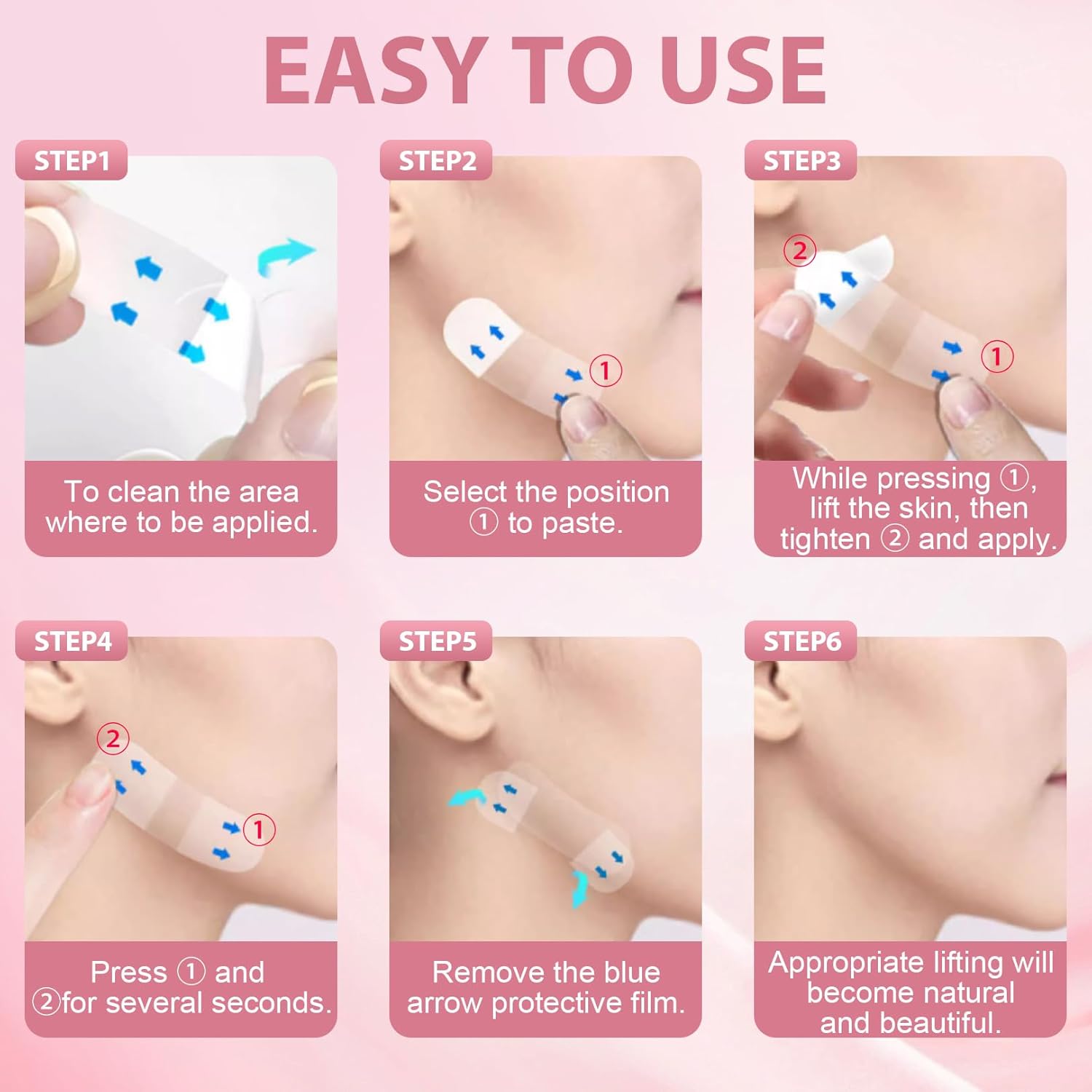 ❣️【Helppokäyttöinen】 Aseta kasvojenkohotusteipin toinen pää ihollesi, vedä ihoa taaksepäin 2,5–5 cm ja paina tiukasti ylöspäin saadaksesi välittömät tulokset! Varmista, että kasvoillasi ei ole meikkiä tai öljyä ennen näkymättömän kasvojenkohotusteipin asettamista. Ystävällisenä muistutuksena, sen poistaminen sattuu hieman, joten voit lämmittää sitä tai pehmentää sitä meikinpoistoaineella ennen sen poistamista.